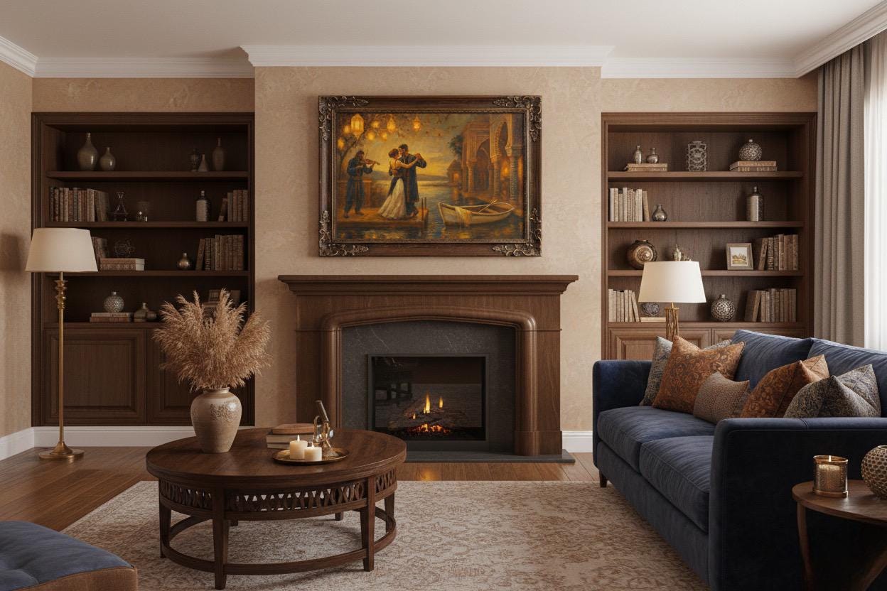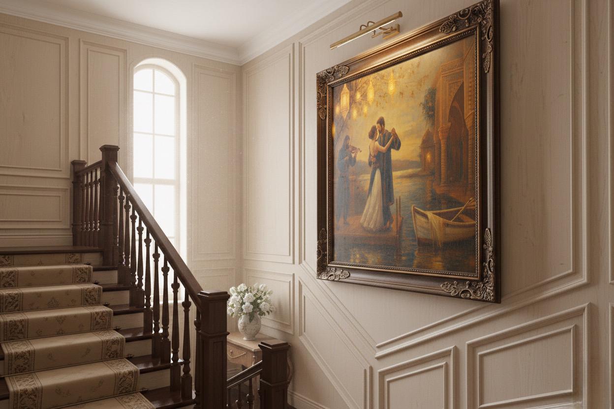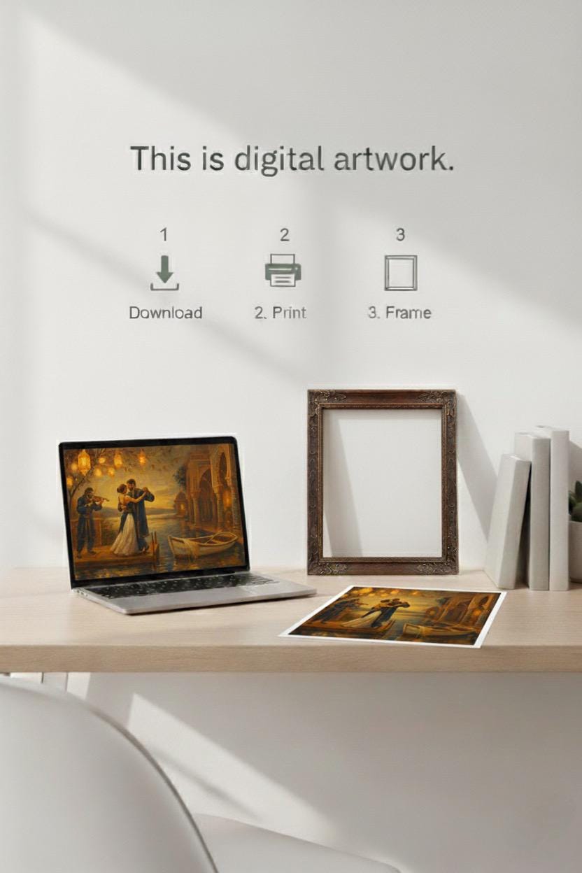It’s the perfect piece for those who love romantic, bohemian, or cultural art a painting that tells a story of love, light, and connection.
