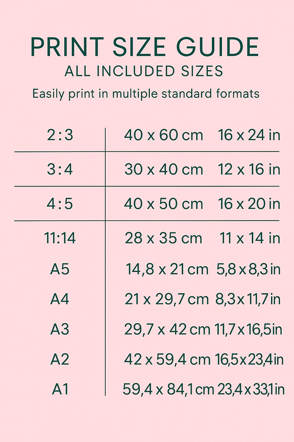 PRINT SIZE GUIDE — ALL SIZES INCLUDED